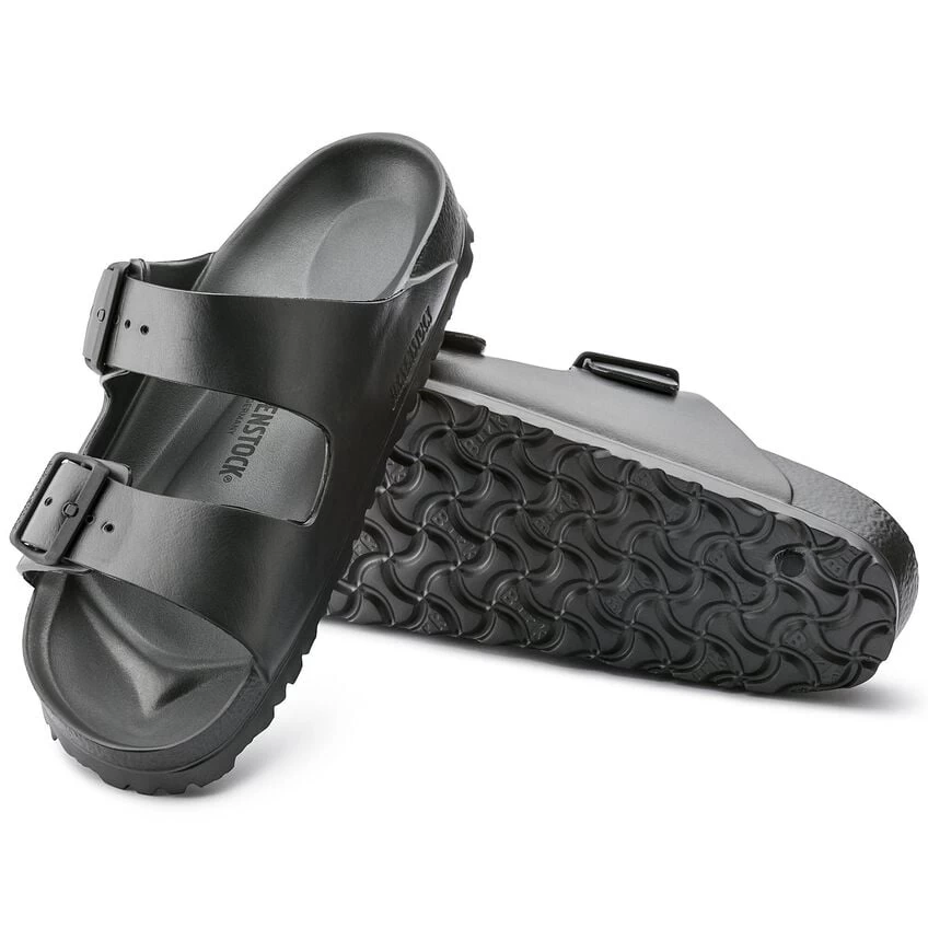 The legendary two-strap design from BIRKENSTOCK – the Arizona. Modeled on the cork original, this sandal is made from ultra lightweight and highly flexible EVA. These sandals are shock absorbing, waterproof, and skin-friendly. Wear them at the beach, in the garden, or around the gym and after workouts. It’s the perfect addition to your classic BIRKENSTOCK sandals.
