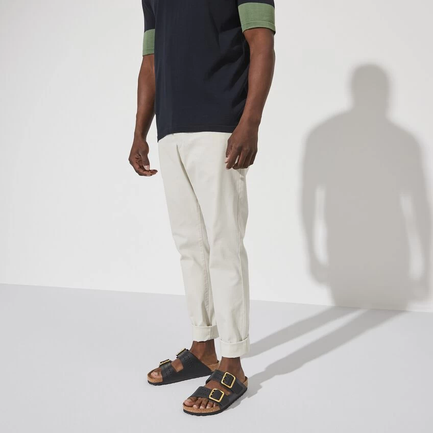 The legendary two-strap design from BIRKENSTOCK – the Arizona. Iconic style with the signature comfort of the BIRKENSTOCK footbed. This modern version of our classic Arizona features a double prong brass tonal buckle and a high traction rubber outsole. The cushioning midsole made from EVA promotes stability and comfort. Made of premium leather with edge embossing