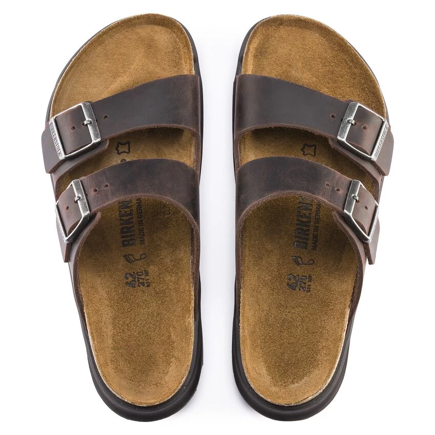 The BIRKENSTOCK Arizona is a genuine classic with its timeless design. This sporty version is perfect for everything from the great outdoors to a cross-town adventure. It is designed with active BIRKENSTOCK fans in mind. This version pairs iconic Birkenstock features including oiled leather uppers, classic buckle closures and suede footbed liners with direct-injection outdoor-ready outsoles for increased traction and durability.