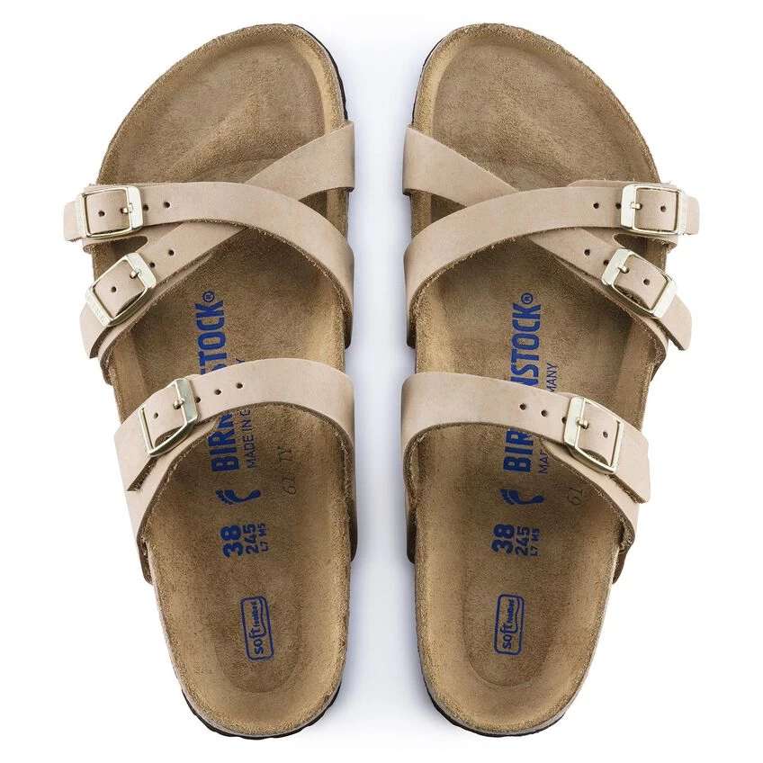An elegant model – the Franca – designed with slim, stylish crisscrossed straps. Featuring an impressive combination of design and wearability for all day comfort. With its additional foam layer, the soft footbed offers extra comfort and pampers feet – all day long. The upper is made from high-quality, soft nubuck leather.