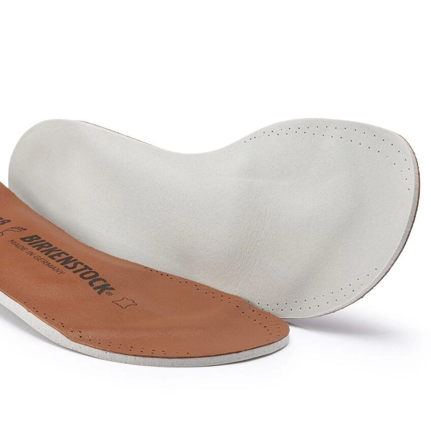 It’s the footbed that makes the difference: our insoles are characterized by their shape, which is created with the anatomy of the foot in mind. They support the foot and ensure comfort every step of the way. The underside of this unisex insole is made from soft, cushioning latex foam. As with the original BIRKENSTOCK footbed, the insole is modeled on the footprint of a healthy foot. The midfoot support takes the strain off the forefoot. The underside of the insole is perforated around the edge of the forefoot, making it easier to cut to size.