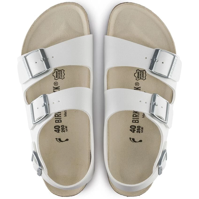 The BIRKENSTOCK Milano guarantees maximum grip and gives the feet stability in any movement scenario. This is thanks to the slightly more compact upper with two straps and the wide backstrap. The upper is made from the skin-friendly, hard-wearing synthetic material Birko-Flor®.
