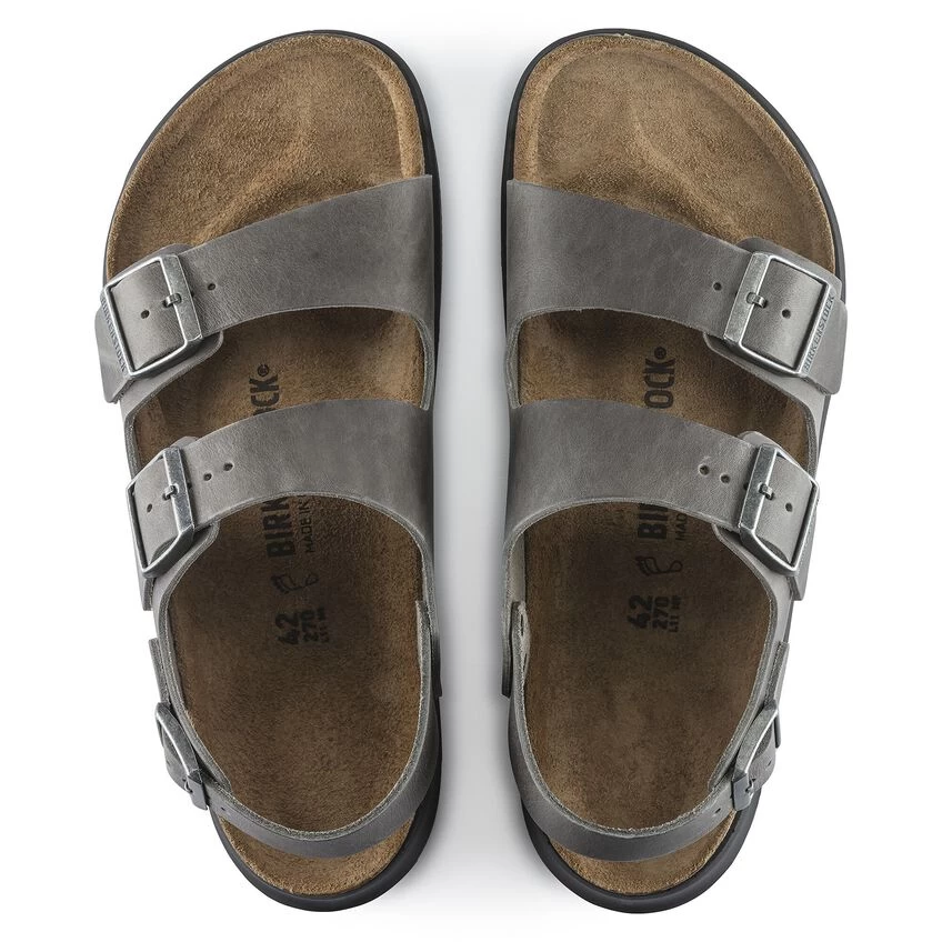 The BIRKENSTOCK Milano is the classic backstrap sandal. This version pairs iconic Birkenstock features including oiled leather uppers, buckle closures and suede footbed liners with direct-injection outdoor-ready outsoles for increased traction and durability.