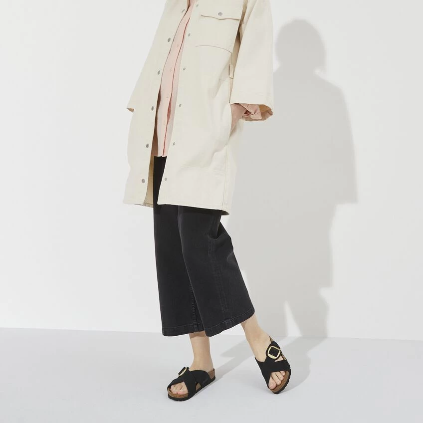 The BIRKENSTOCK Big Buckle Siena is an elegant and stylish sandal featuring crossed straps and a large buckle. The upper is made from high-quality soft nubuck leather for a natural look.